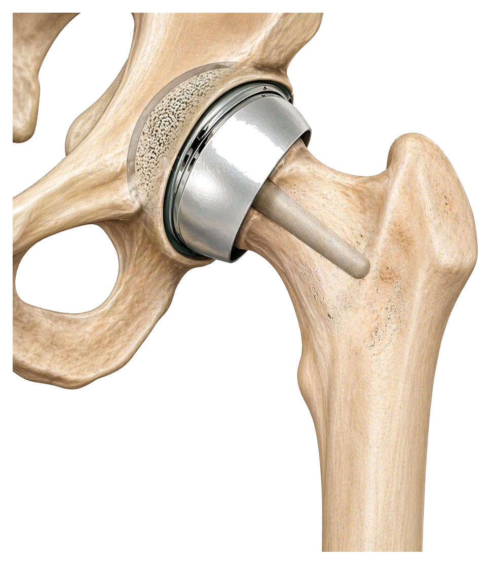 Hip resurfacing is a bone-preserving alternative to traditional total hip replacement. Rather than removing the entire femoral head and replacing it with a ball on a stem, the worn surface is capped with a smooth metal cover, preserving the natural femoral neck and most of the femoral head.
